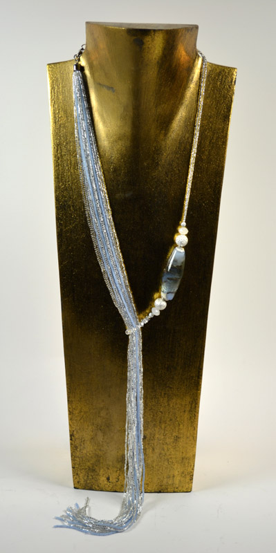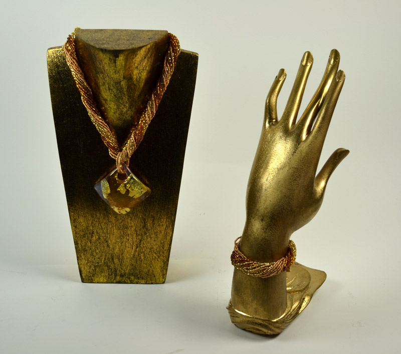 繊細でいてキラキラとした輝きを放つヴェネチアンビーズとガラスを融合させ、さりげないオシャレを演出する。