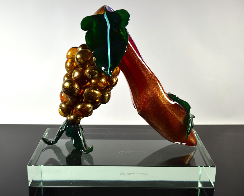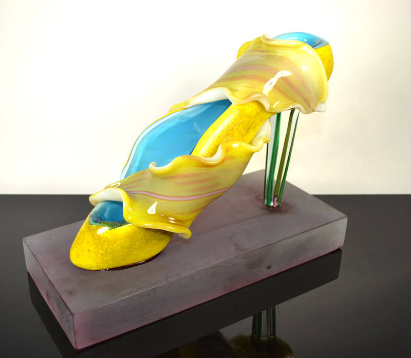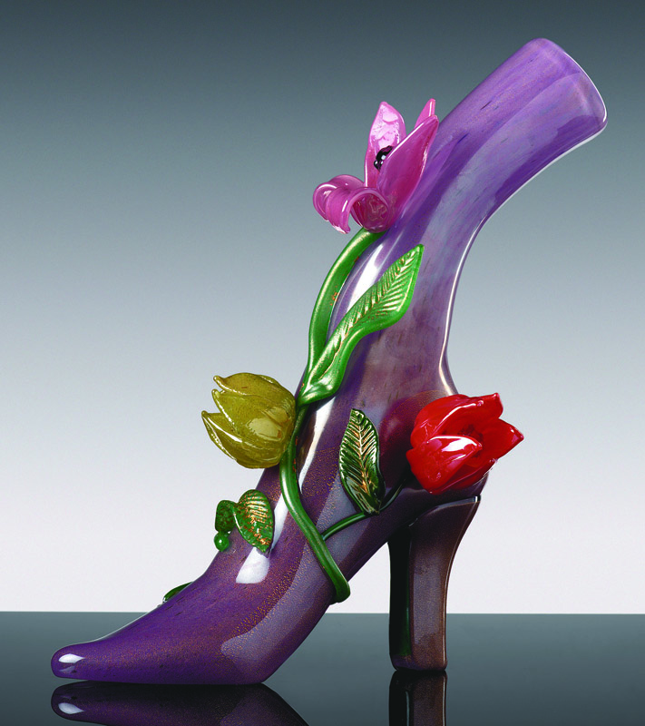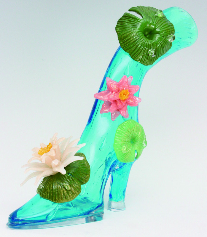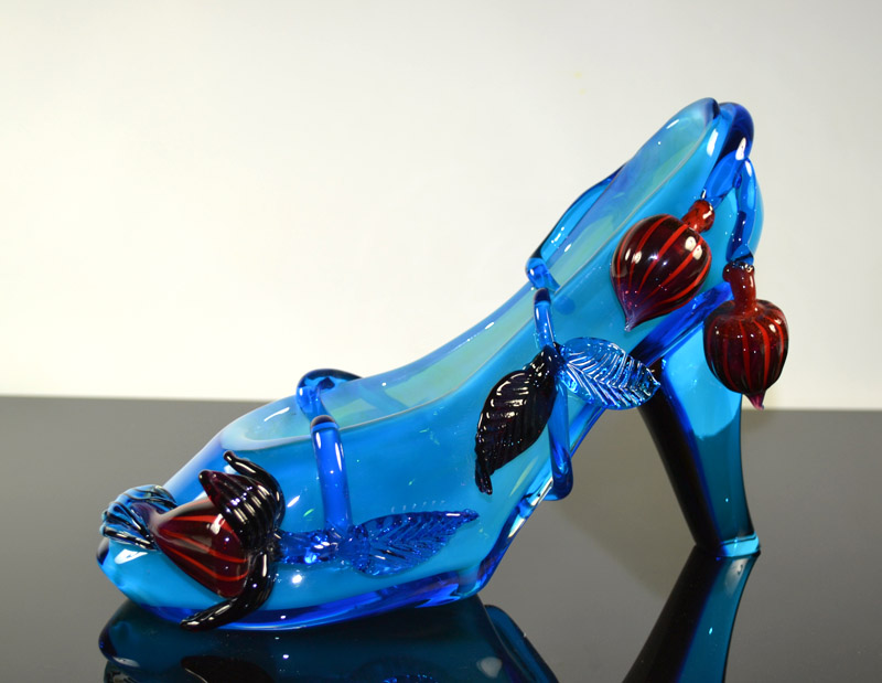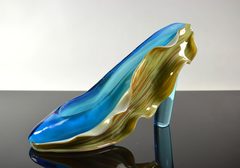 靴というフォルムは私にたくさんのアイデアやイメージを備え付けた。ガラスをデザインする事の喜び、それらがイメージ通りに仕上がり立体的な美しい作品になった時の感動。靴は約150点程制作した。全て異なるモチーフである。これらは世界に向かって私の代表作と呼べるものへと昇華した。
