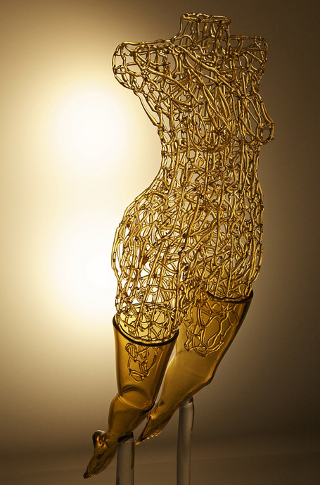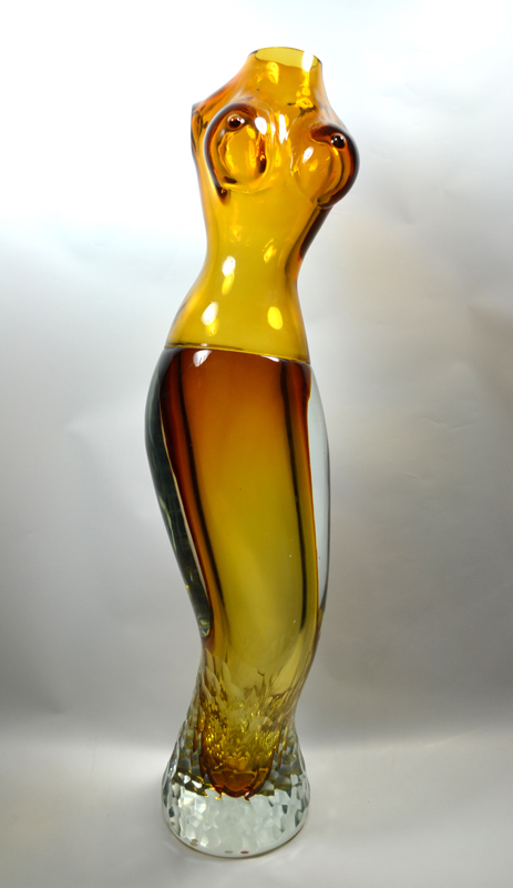 初めての大作はトルソであった。女性のフォルムは昔からたくさんの画家がテーマとしてきたモチーフであるがそれはそのフォルムが自然体であり、単純に美しいからであろう。女性のボディは私の理想像だ。たくさんのガラス作品が生まれる。それらの生みの親である女神像そのものだ。大作制作はエネルギーのいる作業で、大半は完成されない事が多い。発表する事の出来るものは運命である。